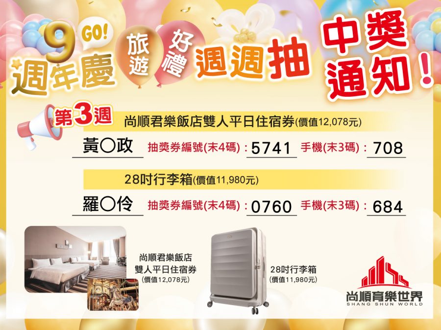 中獎公告-9週年慶GO!旅遊好禮週週抽-第三週